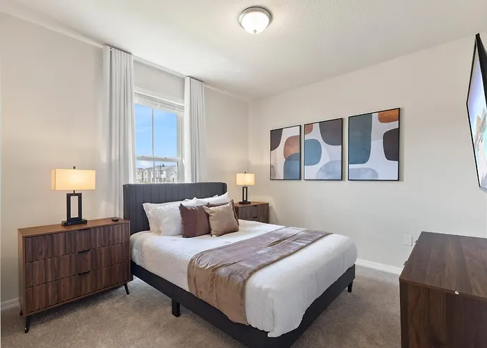 Elegant 5-Bed Home With Private Pool Near Disney features a full kitchen for cooking and provides you with an oven and a dishwasher. Wendy's with American specialties, is located 16 minutes' walk away.